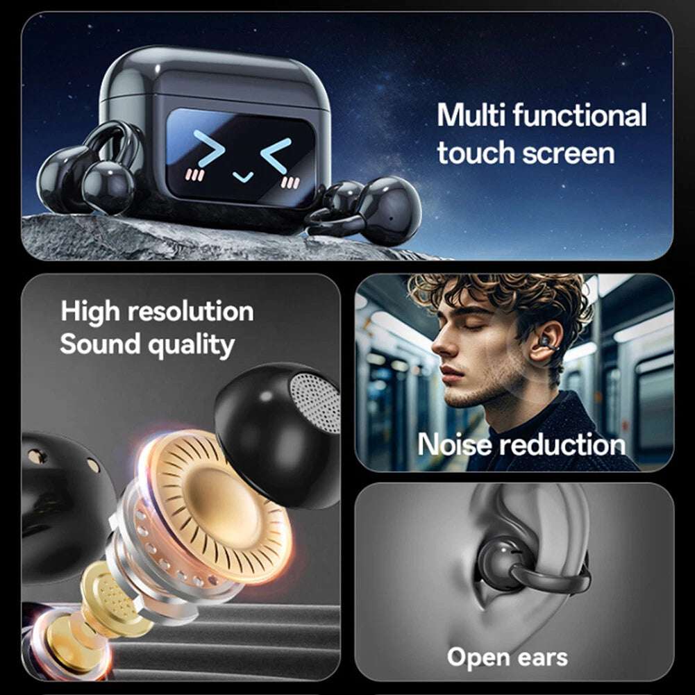 تصميم Ear-Clip مريح: تصميم مبتكر يثبت على الأذن بشكل مريح وآمن، مثالي للرياضة، العمل، والاستخدام الطويل دون التسبب في آلام الأذن.